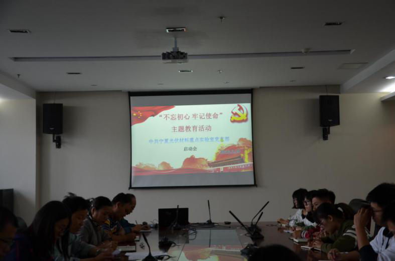 2019年9月19日,中共宁夏光伏材料重点实验室党支部在科技楼A610会议室召开“不忘初心、牢记使命”主题教育启动大会,全体教师、学生预备党员和入党积极分子参加。会议由支部书记何力军同志主持。