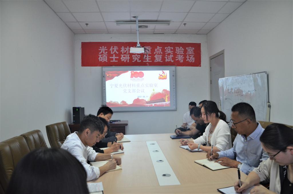 2021年5月11日,中共光伏材料重点实验室党支部在科技楼B603会议室召开支部大会。讨论2021年上半年预备党员发展和确定本支部建党一百周年宁夏大学优秀共产党员推荐对象两项议题。全体师生党员参加,会议由支部组织委员马薇同志主持。