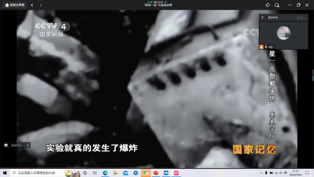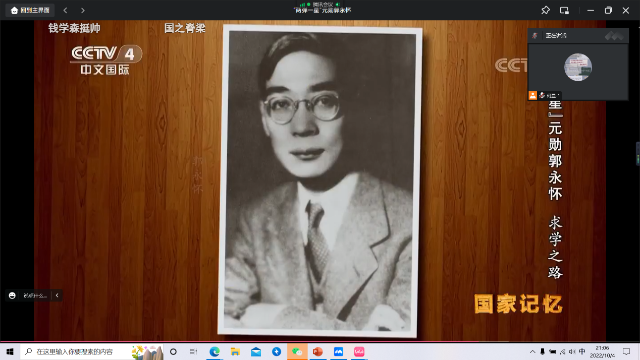 会议第一项,全体党员观看纪录片《“两弹一星”元勋郭永怀》,积极学习郭永怀先生的奉献精神以及爱国主义精神。纪录片从求学之路、奠基国防、以身殉国三个篇章讲述了郭永怀先生的伟大传奇一生。郭永怀先生是我国著名力学家、应用数学家、空气动力学家、近代力学事业的奠基人之一,长期从事航空研究,条件艰苦但不懈奋斗,不畏狂风飞沙、不惧严寒酷暑,担负国防科研的领导工作,为发展导弹核弹卫星事业做出了杰出贡献。