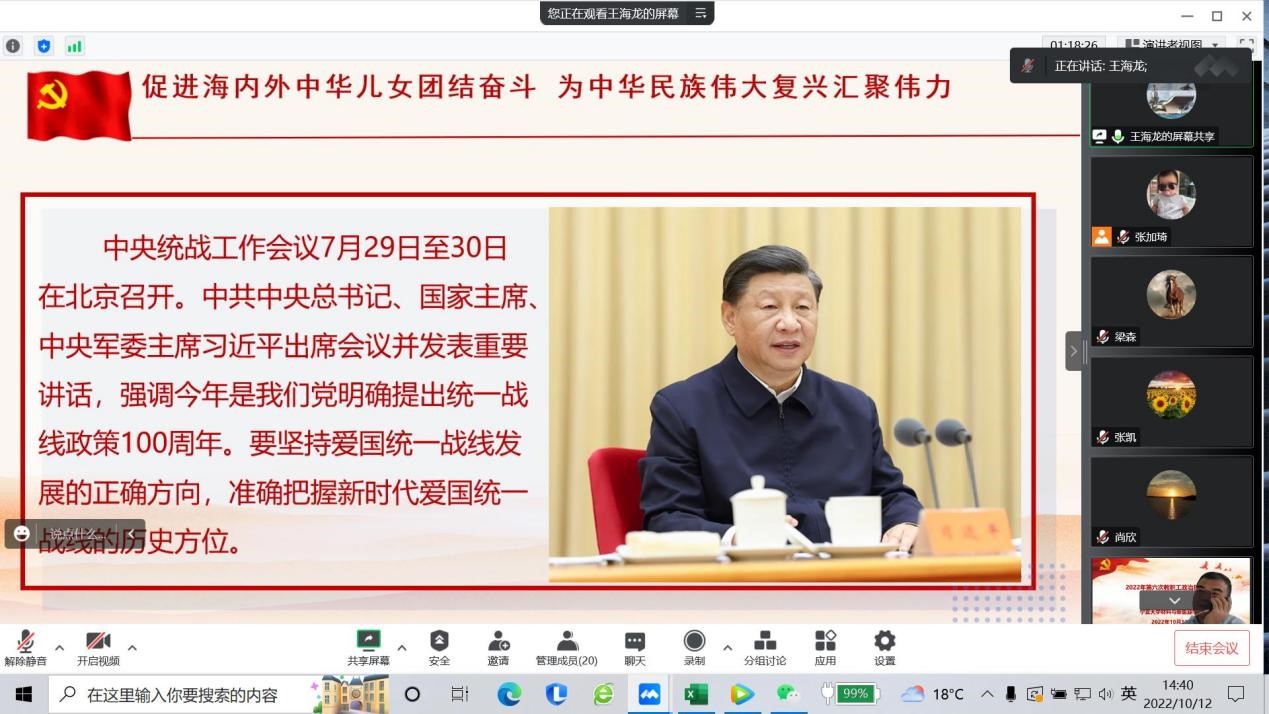 会上,王海龙副院长领学了《习近平总书记在中央统战工作会议上的重要讲话精神》以及教育部印发《关于加强高校有组织科研、推动高水平自立自强的若干意见》,通过学习,与会教职工纷纷表示,统一战线是党克敌制胜、执政兴国的重要法宝,是团结海内外全体中华儿女实现中华民族伟大复兴的重要法宝,必须长期坚持。加强新时代统一战线工作,根本在于坚持党的领导,形成全党上下一齐动手、有关方面协同联动的工作局面。