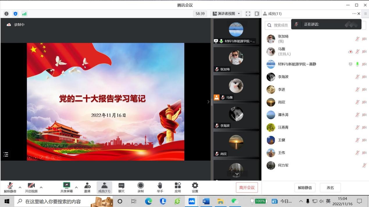 直属党支部各党小组及全体教职员工通过线上形式开展第二次党的二十大精神学习活动,活动由直属党支部各党小组组长主持,全体教职工参加。