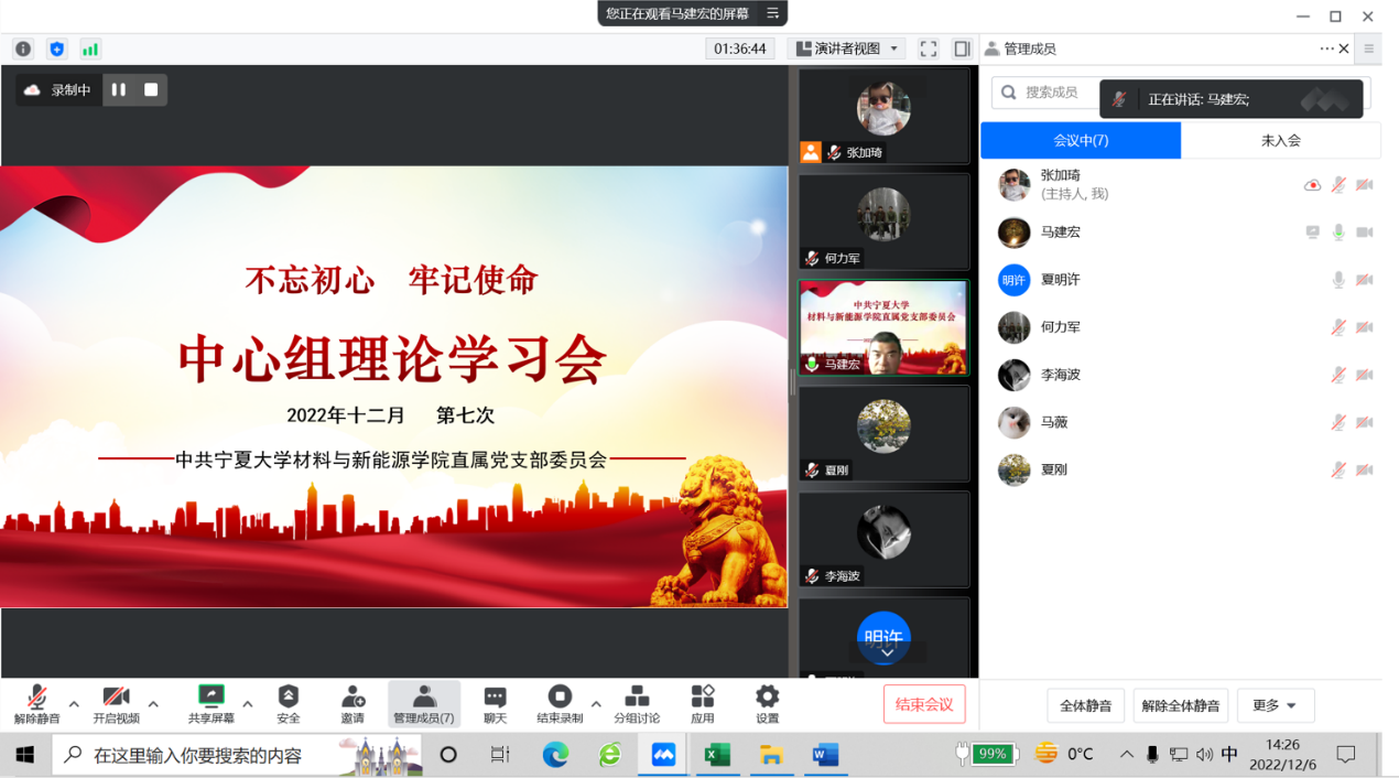通过线上形式召开直属党支部委员会理论学习中心组(扩大)第七次学习会,学习贯彻党的二十大精神。直属党支部全体委员、各党小组组长、各办公室负责人以及教师代表参加,会议由支部书记马建宏同志主持并领学。