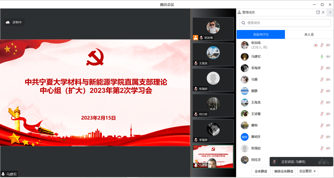 通过线上形式召开2023年直属党支部理论中心组(扩大)第2次学习会,直属党支部书记马建宏主持会议,直属党支部委员、各党小组组委会成员参加会议。