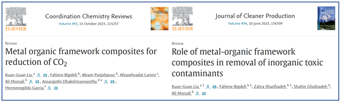 引智专家,宁夏大学贺兰山讲席学者Ali Morsali教授先后在国际期刊⟪Coordination Chemistry Reviews⟫(IF = 24.833,中科院一区TOP)和⟪Journal of Cleaner Production⟫(IF = 11.072,中科院一区TOP)上发表题为“Metal organic framework composites for reduction of CO2”和“Role of metal-organic framework composites in removal of inorganic toxic contaminants”的高水平综述文章。新香港六合彩资料