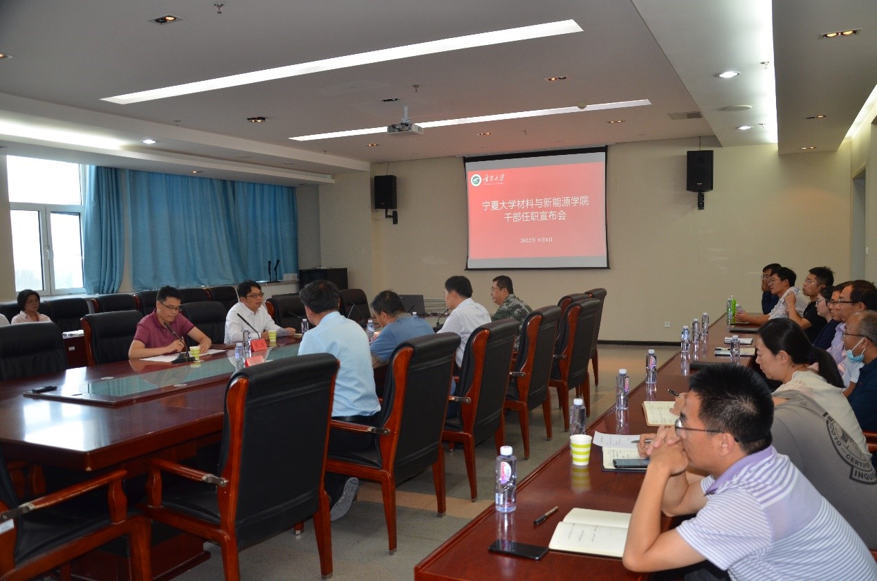 在科技楼A610会议室召开干部任职宣布大会,宁夏大学党委副书记、校长彭志科出席会议,新香港六合彩资料