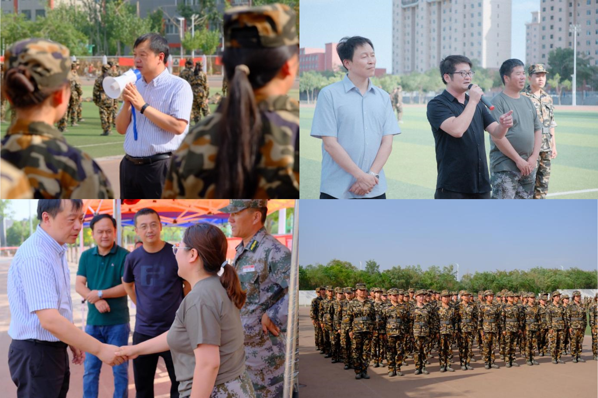 领导班子到文萃校区操场和金凤校区操场,慰问参加军训的2023级本科新生。