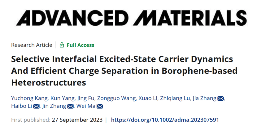 近日,我校在二维范德瓦尔斯异质结载流子动力学研究领域取得重要研究进展,有关成果以《Selective Interfacial Excited-State Carrier Dynamics And Efficient Charge Separation in Borophene-based Heterostructures》为题发表于材料学国际顶级期刊《Advanced Materials》(IF=32.08,中科院一区TOP)上,宁夏大学为第一单位,新香港六合彩资料