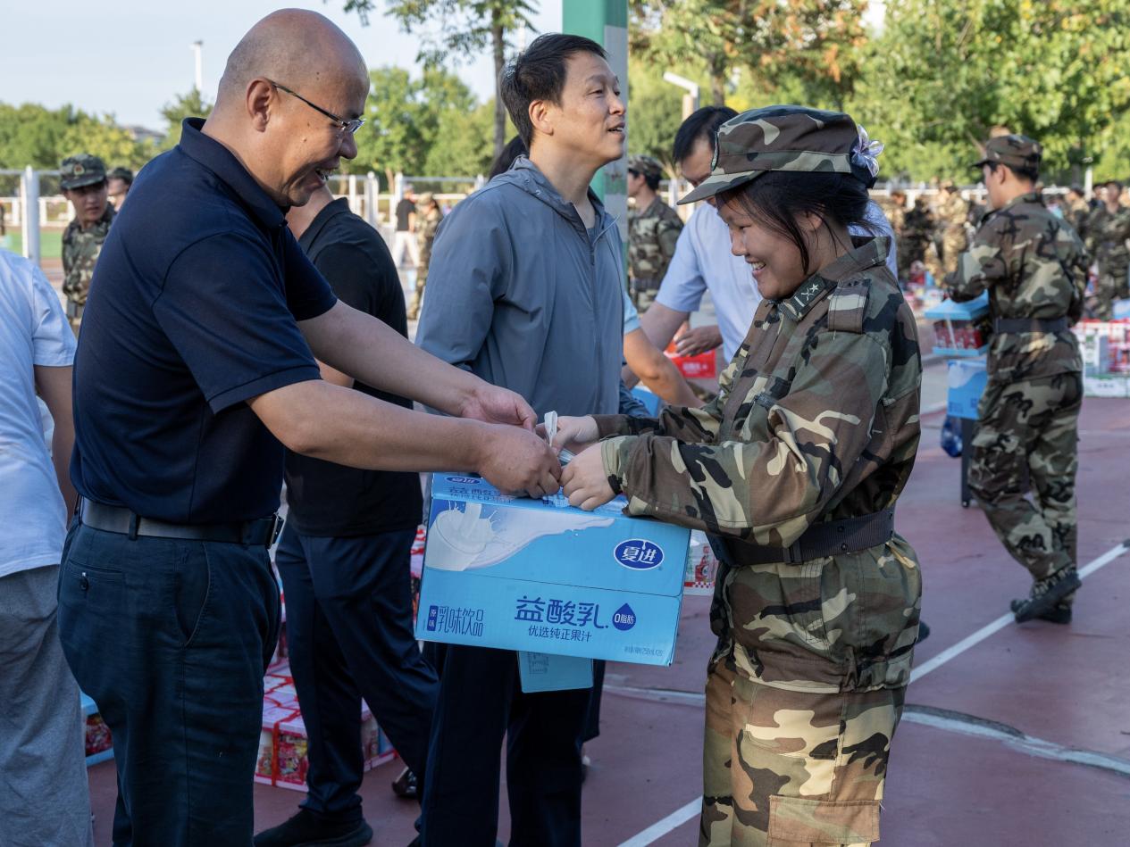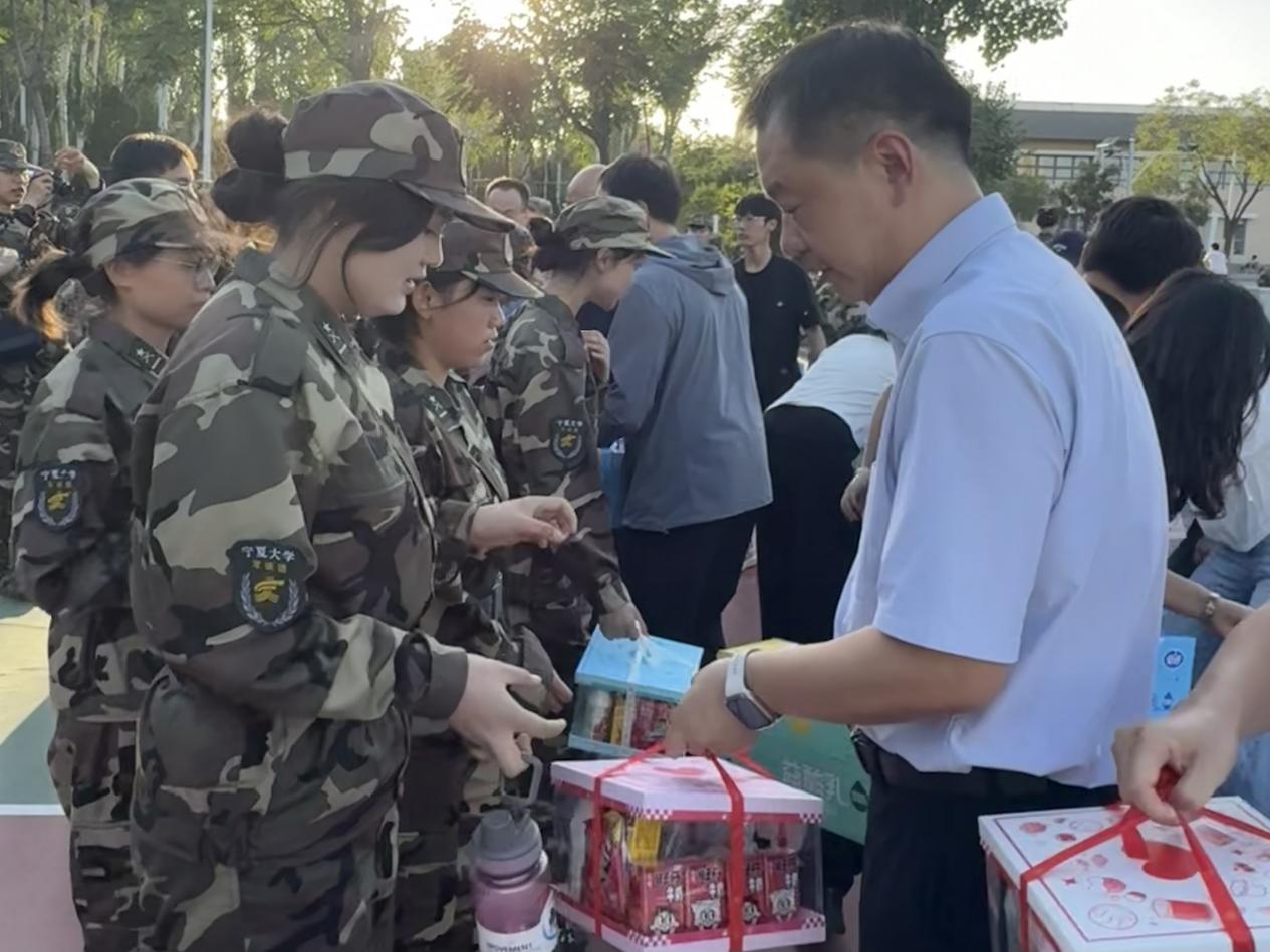 领导班子来到2025级新生军训场地看望参训学生,并向他们致以温暖问候。