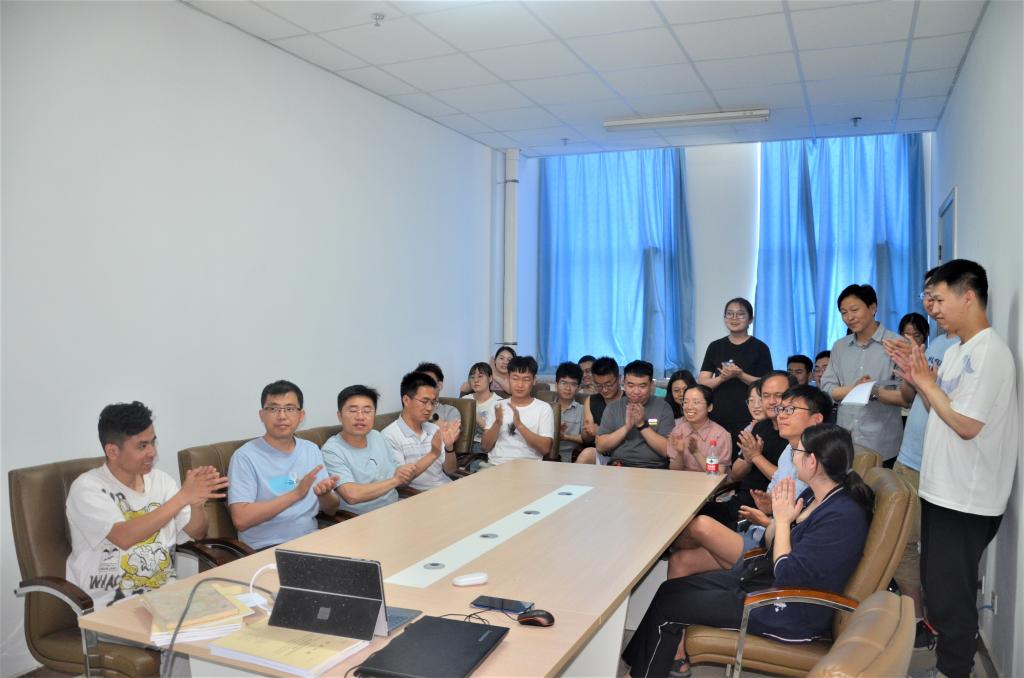 实验室主任何力军同志代表实验室答辩委员会,郑重向黄蓉同学宣读了对她的答辩决议,祝贺她通过学位论文答辩。黄蓉同学导师梁森同志和同学姚珊珊分别代表师生向她表达了祝贺之情,并祝她早日调理好身体。在场全体师生热烈鼓掌,气氛温暖感人。
