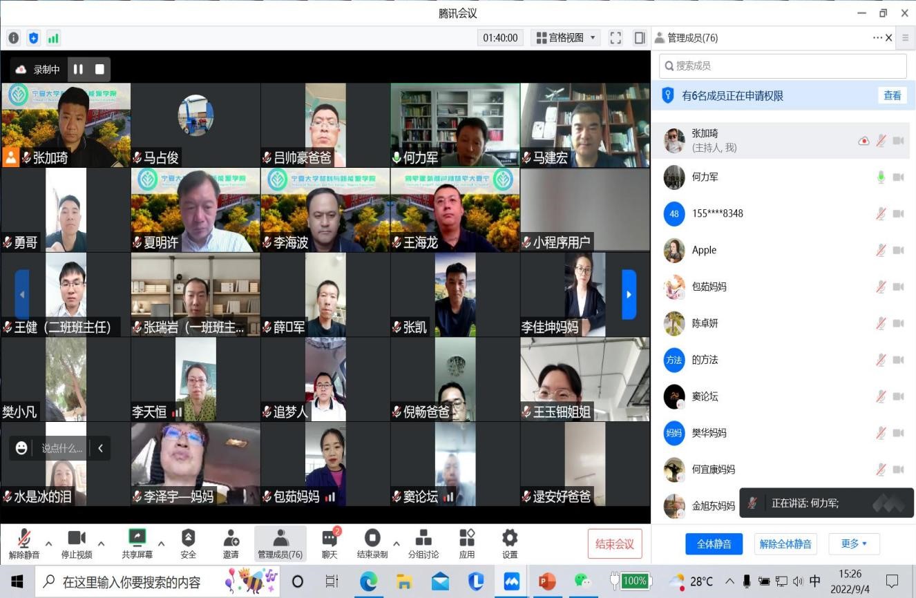 领导班子成员、新生班主任及新生家长在云端参加了会议,会议由常务副院长何力军主持。
