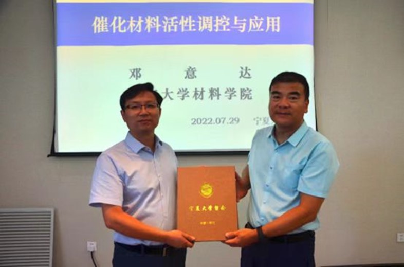为邓意达教授颁发宁夏大学贺兰山学术讲座荣誉证书。
