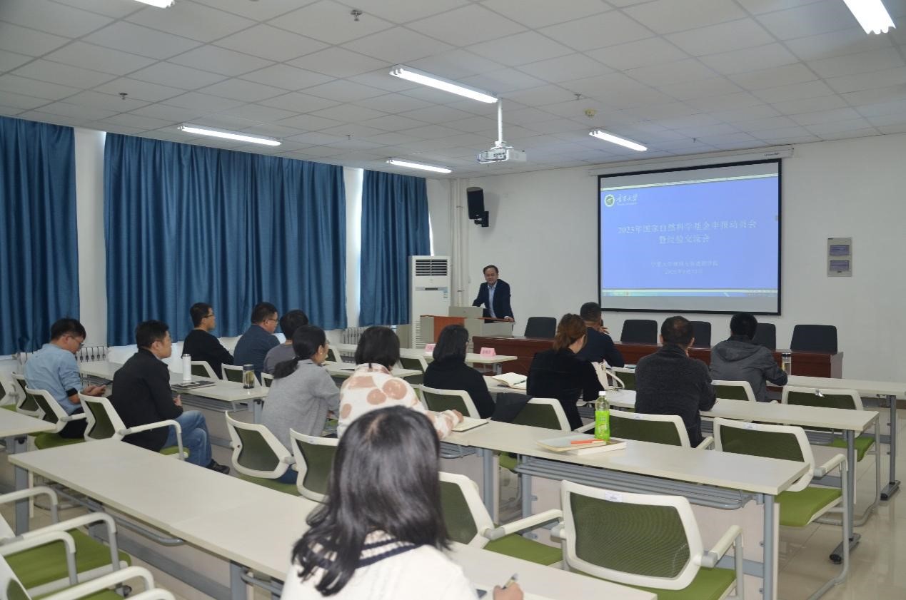 在科技楼B301B会议室召开2023年国家自然科学基金申报动员会暨经验交流会。会议由副院长李海波同志主持,全体教师参加。