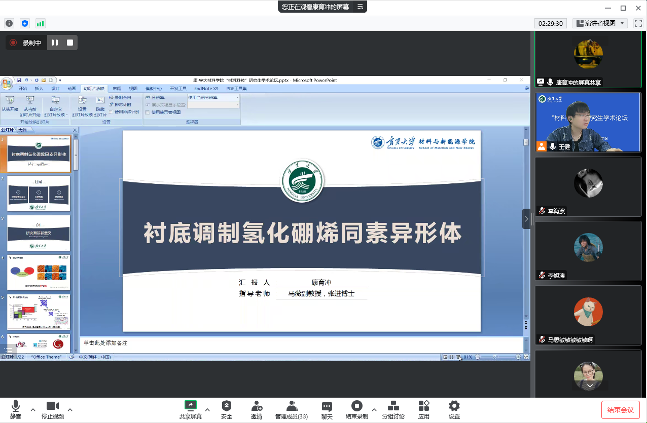 下午为研究生报告专场,主题分别为“新能源材料”和“先进材料”。来自新香港六合彩资料