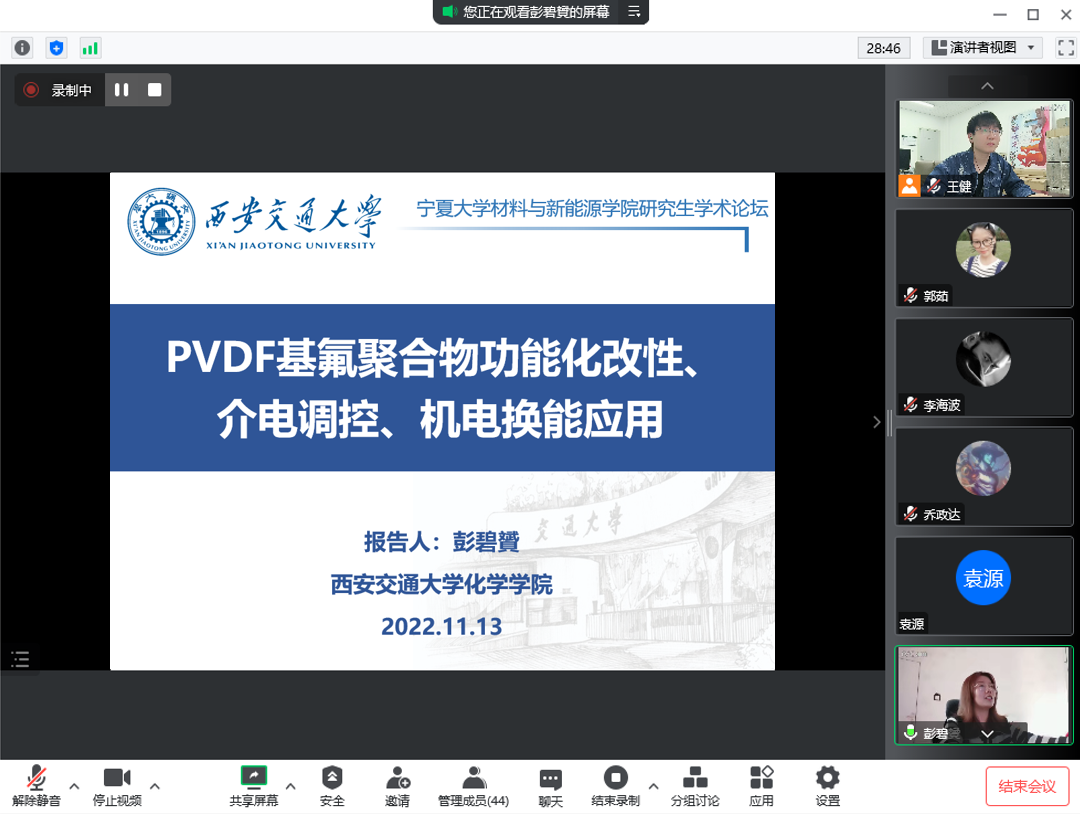 全体师生参加,来自西安交通大学和北方民族大学材料类专业的研究生也积极参与了本次论坛。